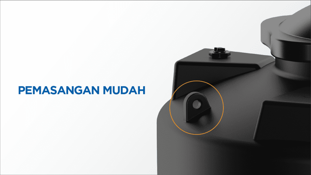 Dilengkapi dengan fitur lubang Lifting Lug, proses penurunan dan pengangkatan tangki menjadi lebih mudah tanpa memerlukan bantuan alat berat. Desainnya yang compact juga memungkinkan pemasangan tangki tanpa dinding beton, sehingga dapat menghemat biaya dan waktu.